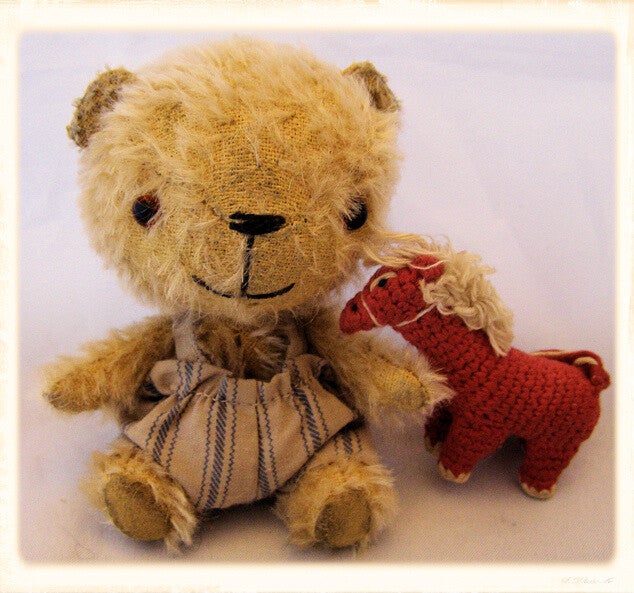 This is his brother who was also made from vintage mohair, with brown glass eyes. Now Sold and off to the USA