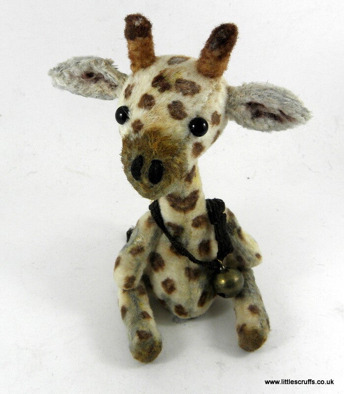 Jools is a 5" (excluding his two Ossicones) Giraffe. He has black glass eyes and stitched nostrils and is fully cotterpin jointed.