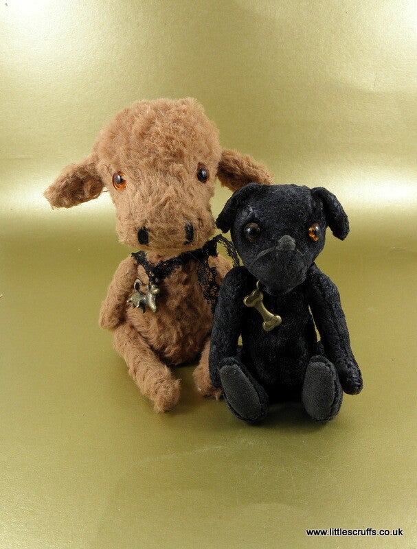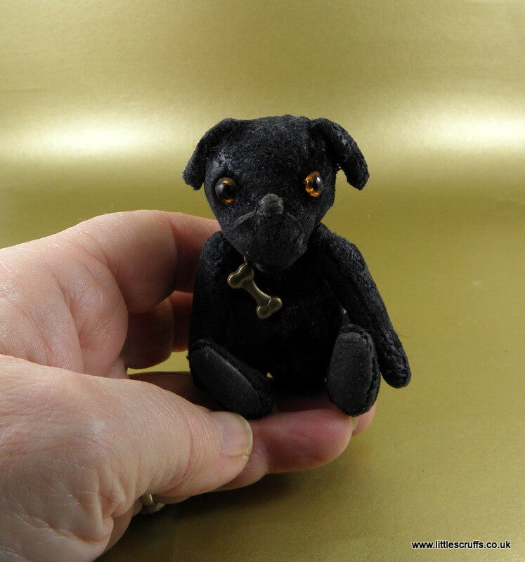 Winston is fully jointed, is stuffed with Kapok and has steel shot in his saggy bottom.He comes wearing a bronze effect "Bone" charm around his neck and is a one of a kind.