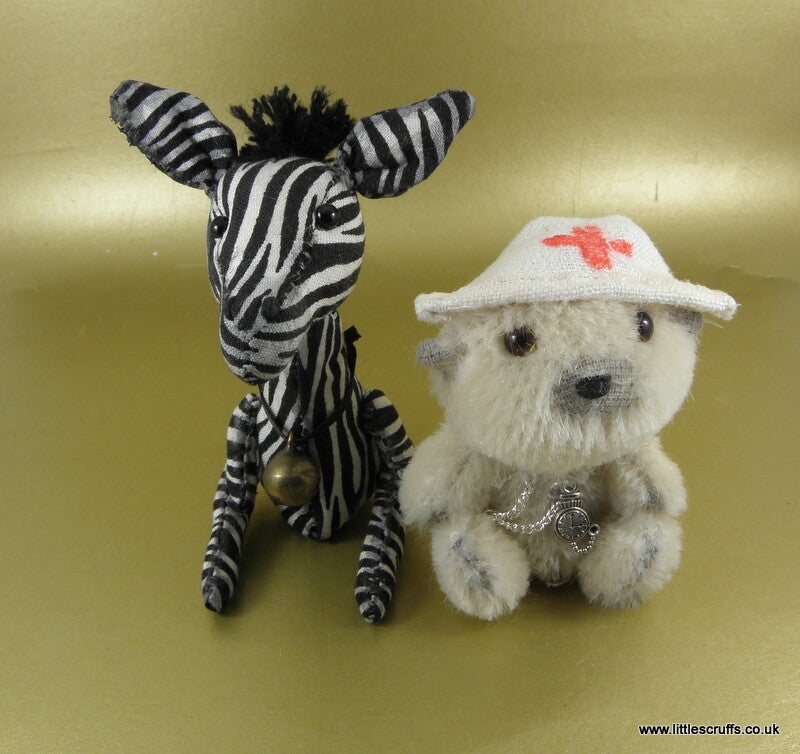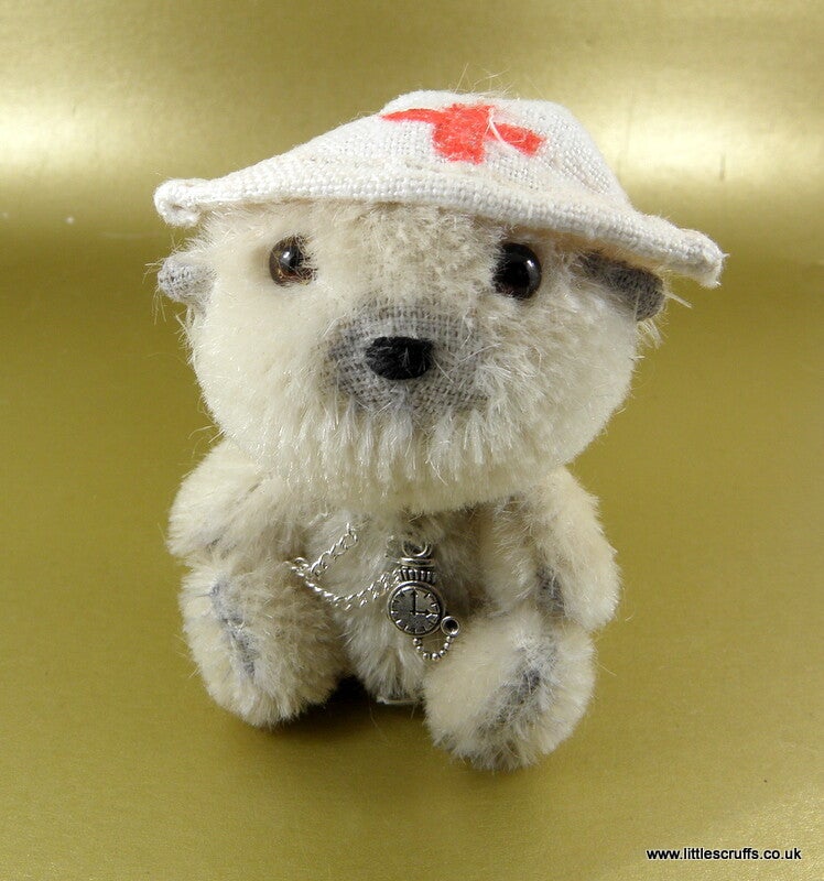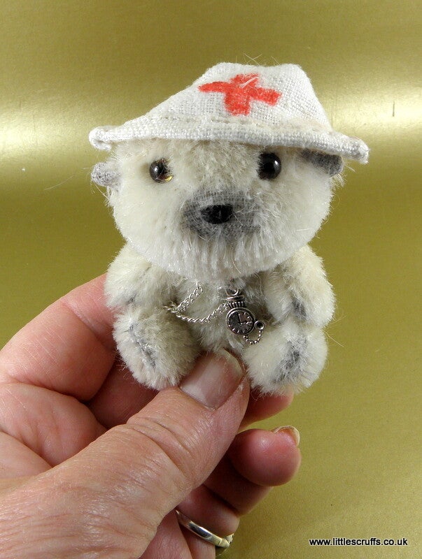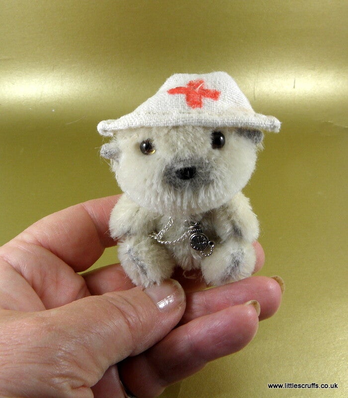 Unlike the WW1 Soldier Bears I don't think any nurse bears were made. But of course they were needed to patch the Soldier Bears up when they got hurt so this is one of Little Scruffs' nurses.