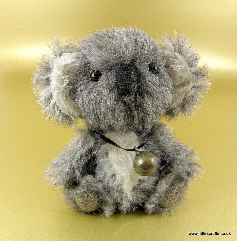 This scruffy little Koala bear is made from dense grey mohair with a white mohair chest and inner ears. He has black glass eyes and an embroidered waxed nose.