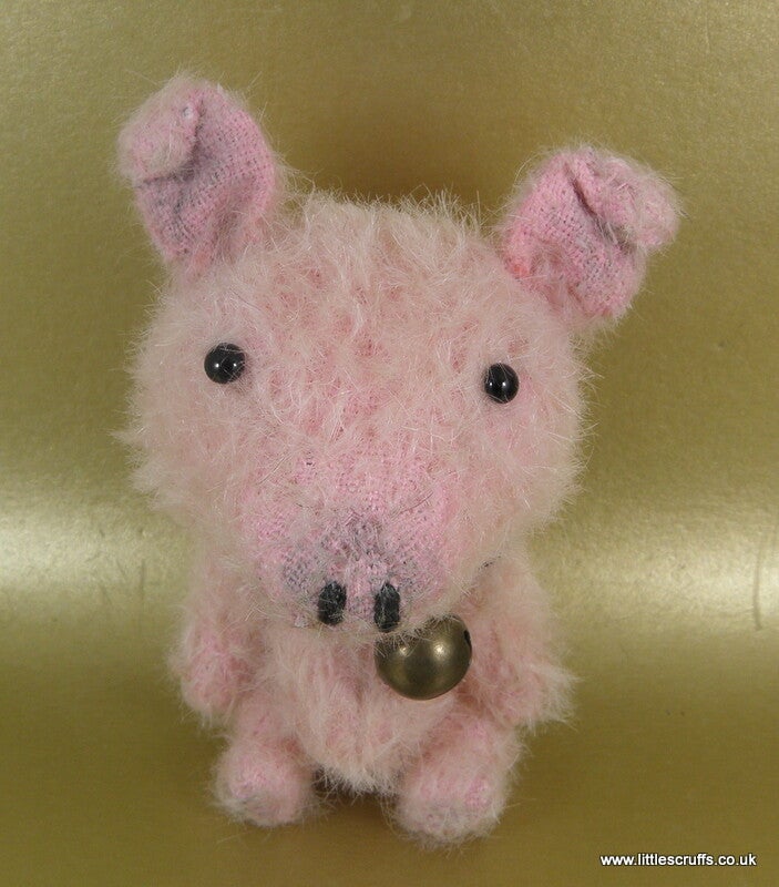 George is 3& 1/2 inches tall excluding his ears and has black glass eyes and a black stitched snout.He is fully cotter pin jointed and is stuffed with Kapok, with tiny circles of steel in his belly for added weight.He is made from fuzzy pale pink mohair.